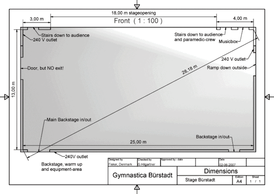 Please note as well the dimension of the stage lined out in the plan. Please feel fre to contact us if you have further questions regarding the infrastructure.